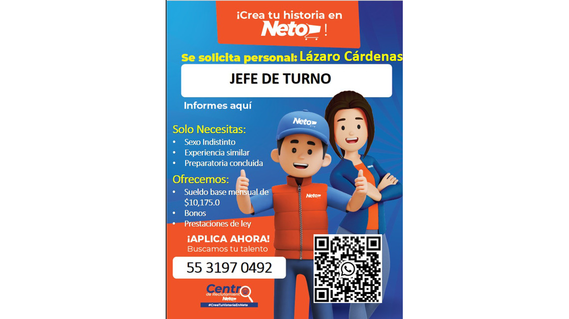 ¡ÚNETE A NOSOTROS Y CREA TU HISTORIA EN TIENDAS NETO!